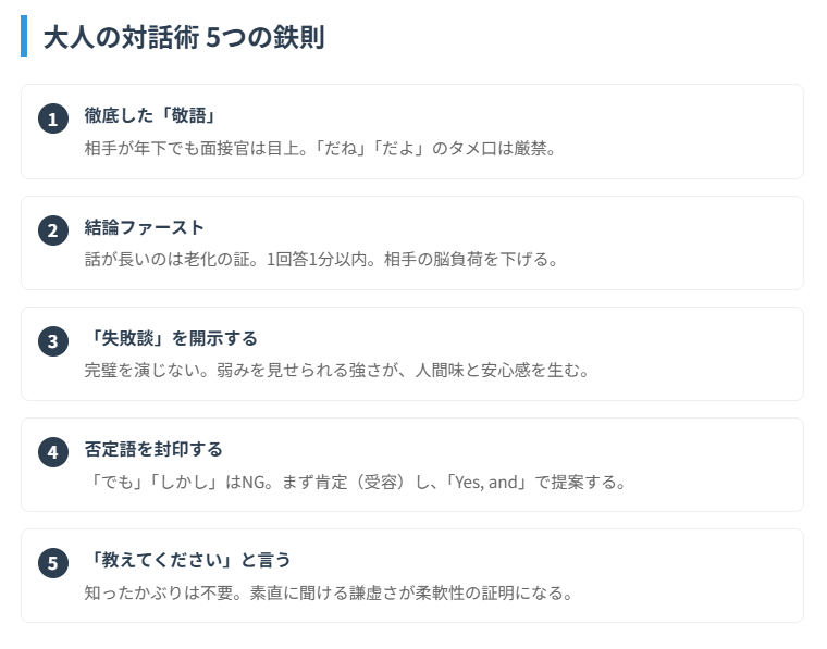【実践】年下面接官の心を掴む「大人の対話術」5つの鉄則