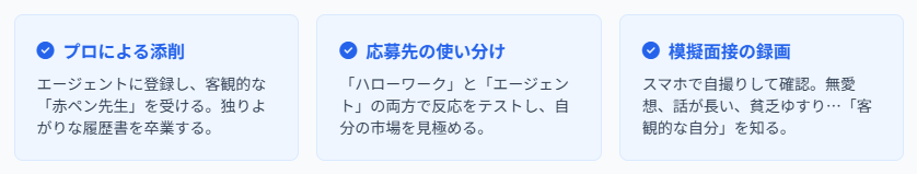 「客観的な自分」を見ることは怖いことですが、これを乗り越えれば、面接の通過率は劇的に向上します。