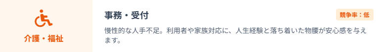 一般企業の事務(丸の内や大手町のOL)は忘れましょう。そこは20代の激戦区です。60代女性が狙うべきは、「若手不人気」×「対人スキル重視」の業界です。