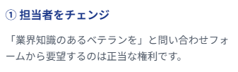 - 担当者が合わなければ問い合わせフォームから変更可能