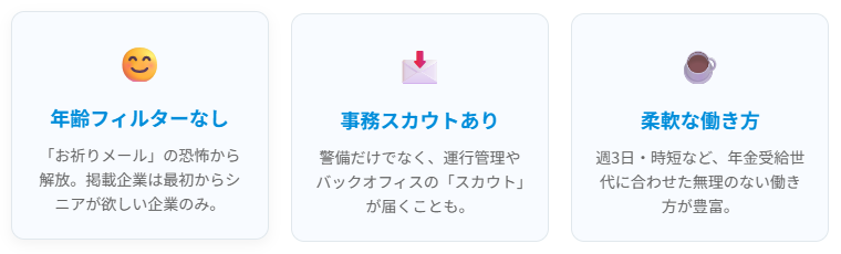 ここにある求人は、企業がわざわざ「ミドルシニア」にお金を払って掲載しているものです。つまり、「おじさん・おばさんが欲しい企業」しかいません。「応募していいのかな…」と怯える必要がない。この心理的安全性が最大の価値です。