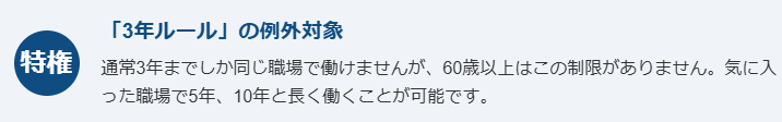 • 60歳以上は「派遣3年ルール」の例外で長く働ける