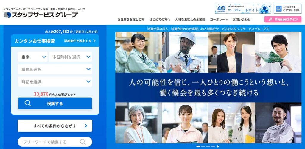 派遣といえばテンプ」と言われる最大手です。女性の登録者が多く、サポートが非常に丁寧で「お母さん」のような安心感があります。官公庁や自治体の仕事(ワクチン接種受付や給付金事務など)に強く、これらは期間限定ですがシニアが大量採用される案件です。PCスキルに不安がある人向けの研修制度も充実しています。