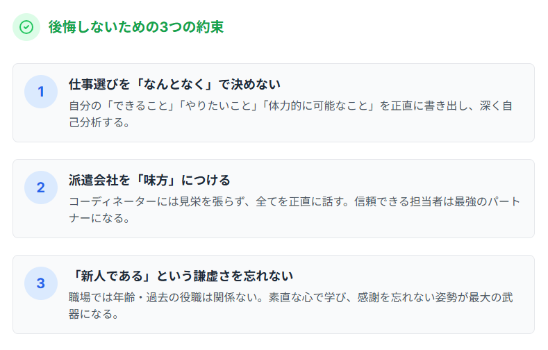 まとめ:後悔しない派遣デビューのための3つの約束