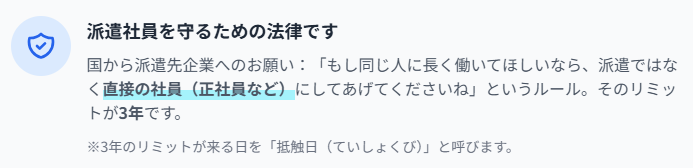 なるほど…。派遣社員が不安定な立場のまま、ずっと置かれないようにするためのルールなのね。