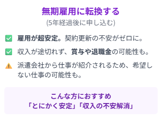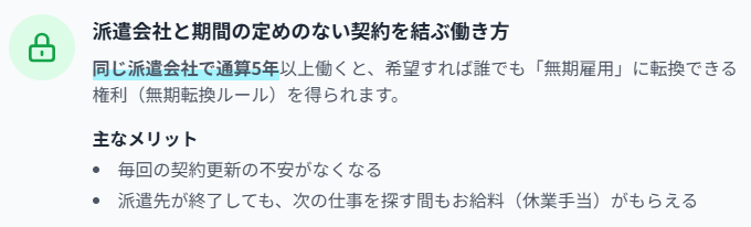 • 同じ派遣会社で通算5年以上働くと申請する権利が得られる
