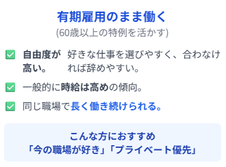 もし、今の職場がとても気に入っていて、そこで長く働き続けたいのであれば、『60歳以上の特例』を活かして、有期雇用のまま働き続けるというのも、賢い選択です。逆に、将来的な安定を最優先したいのであれば、5年という節目で『無期雇用』への転換を検討するのが良いでしょう。これは、どちらが正解というわけではないんですよ。