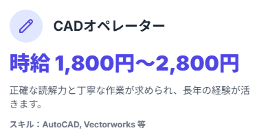 • CADオペレーターは時給1,800円〜2,800円で正確性が評価される