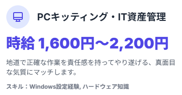 • PCキッティングは丁寧な作業で時給1,600円〜2,200円が狙える