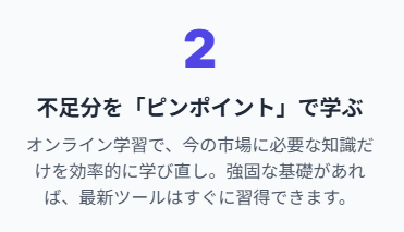 やみくもに新しいことを学ぶ必要はありません。カウンセリングで明確になった「市場で求められているスキル」と、今の自分との差分だけを、ピンポイントで学習すれば良いのです。