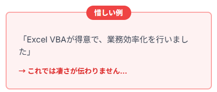 【悪い例】「Excel VBAが得意で、業務効率化を行いました」
