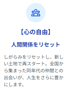 - 人間関係をリセットし、新しい仲間と出会える環境が得られます