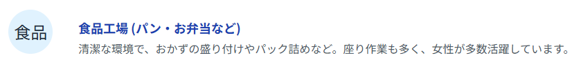 - 食品工場は清潔な環境で座り作業が多く、60代女性が最も活躍している職場です