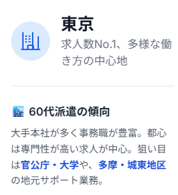 - 東京・大阪・横浜、それぞれの「60代派遣のリアルな事情」と「仕事の傾向」を地域別に詳しく解説