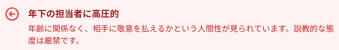 面談の担当者が、自分の子供や孫のような年齢であることも多いでしょう。その相手に対し、無意識のうちに「〇〇君さあ」「それは違うんじゃない?」と、高圧的・説教的な態度を取ってしまう方がいます。