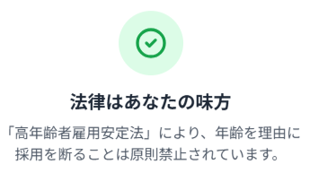 - 高年齢者雇用安定法により、年齢を理由に採用を断ることは原則として禁止されている