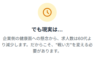 しかし、法律と現実には大きなギャップがあります。正直に申し上げれば、求人数は60代の頃と比べて、かなり少なくなります。