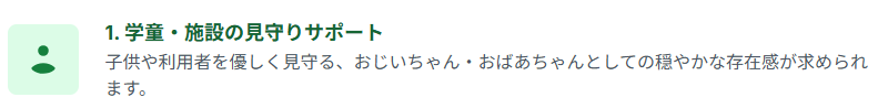 - 学童の見守りやコンシェルジュなど、人生経験が活きる仕事が存在する