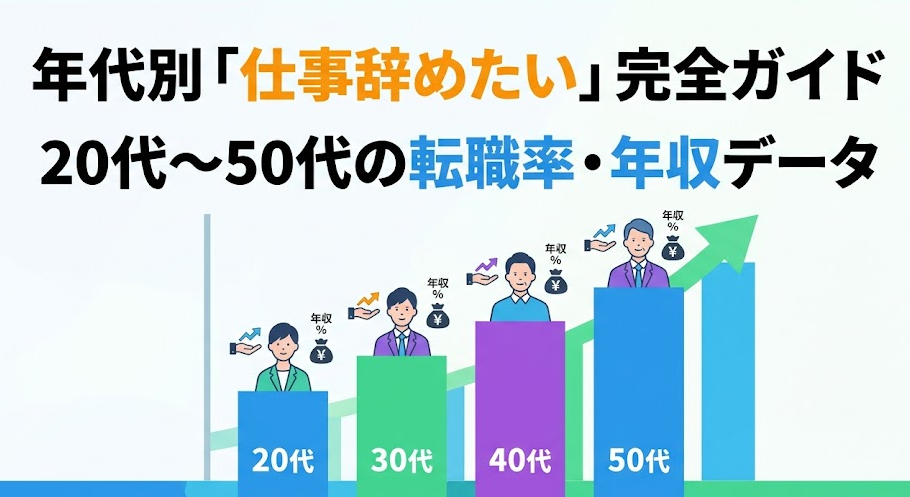 | 年代 | 辞めたい理由Top3 | 年代特有のリスク | 最適アクション | 転職後の年収変動 |