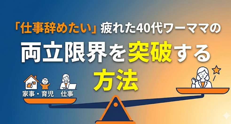 40代ワーママが「仕事辞めたい、疲れた」と感じるのは、仕事の責任+育児+家事+身体の変化(更年期)という”四重負荷”を一人で背負っている結果です。甘えではありません。