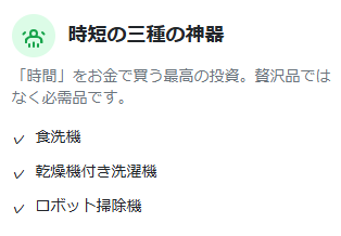 • 時短家電(食洗機・乾燥機付き洗濯機・ロボット掃除機)は贅沢品ではなく必需品