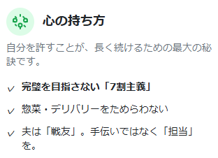 • 完璧を目指さず惣菜やデリバリーに頼る勇気が、長続きする秘訣