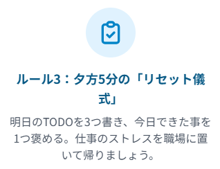 ルール3:夕方5分の「儀式」。仕事のストレスを、職場に置いてくる