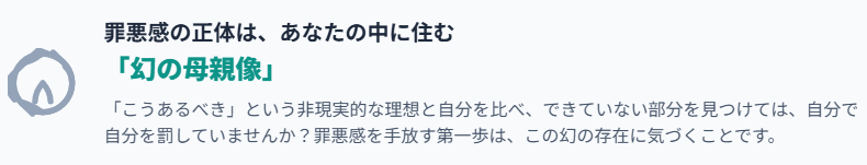 - 罪悪感の正体は、心の中の「幻の母親像」との比較から生まれる