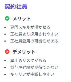 - 契約社員:専門スキルを活かせる職場が多く、正社員へのステップアップにも有効