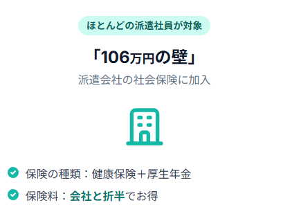 従業員51人以上の派遣会社で働く場合は106万円の壁、それ以外は130万円の壁が適用されます