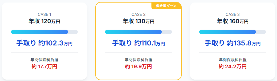 - 年収130万円〜160万円は保険料負担で「働き損」になりやすいゾーン