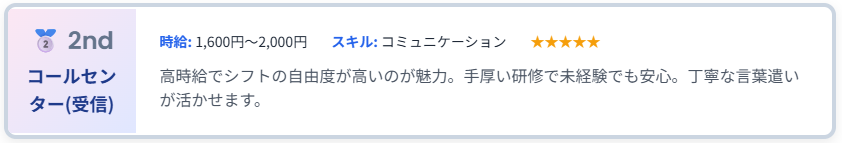 - コミュニケーション好きなら「コールセンター」:高時給でシフトも柔軟。丁寧な言葉遣いが活かせる