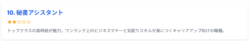 1,700円〜2,100円 | 高度なビジネスマナー、PCスキル、調整能力 | ★★☆☆☆ |