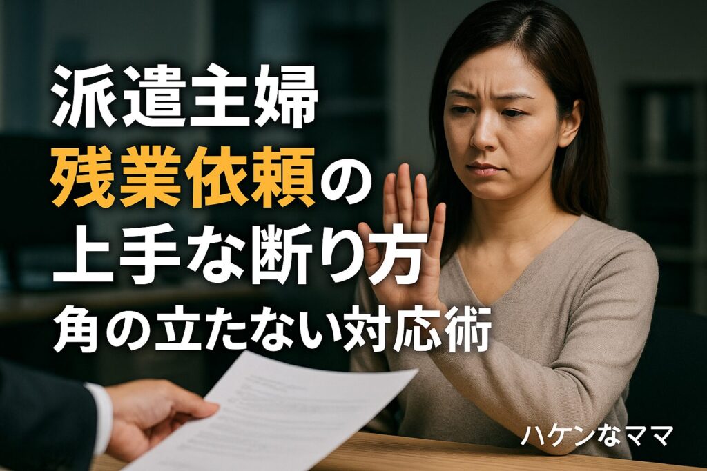 「定時で帰れるはずだったのに、また断れなかった…」「『残業できないキャラ』って思われて、契約更新に響いたらどうしよう…」「断った後の、あの気まずい空気。もう、本当にイヤだ…」 子どものお迎え、夕食の準備、分刻みのスケジュールで戦う派遣ワーマ... -