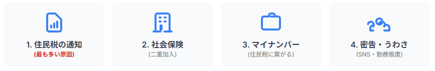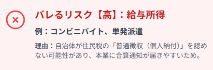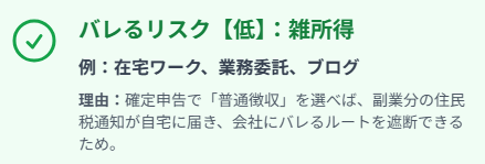 - バレる最大の原因は「住民税」:「給与所得」は住民税対策(普通徴収)が失敗するリスクが残る