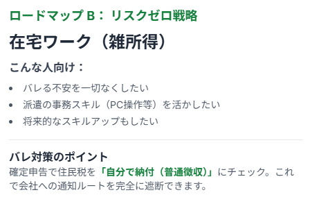 ロードマップB:バレるリスクを「ゼロ」にしたい → 『在宅ワーク』(雑所得)