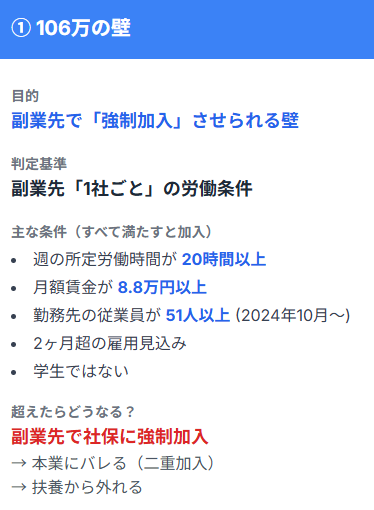 • 106万の壁は副業先での強制加入ライン