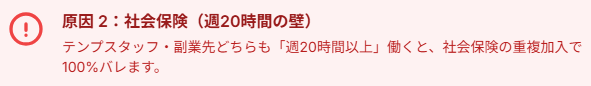 バレる原因2:社会保険(週20時間の壁)