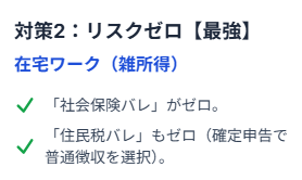 - リスクゼロ:在宅ワークで社保・住民税バレを制度的に回避