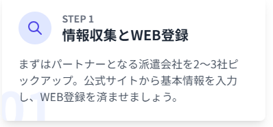 STEP1情報収集・WEB登録派遣会社を2〜3社選び基本情報登録1日