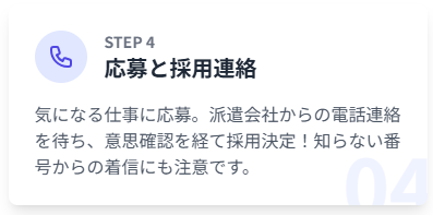 STEP4仕事応募・採用連絡気になる仕事に応募し採用される1〜3日