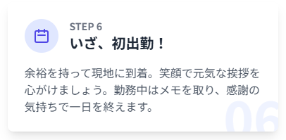 STEP6:【本番】最高のスタートを切る!いざ初出勤!