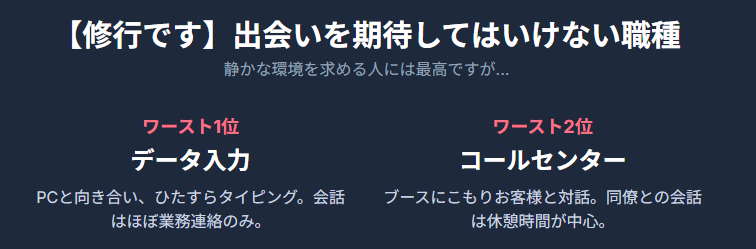 - ワースト1位:データ入力(出会い期待値ゼロ)