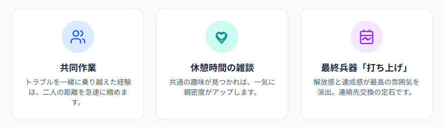 この一言が、全てを「仕事仲間」から「友達」、そして「恋人候補」へと変える魔法の言葉。