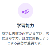 学習能力 | ミスからの改善、スキルアップ | 経験から学び、成長し続けられる |
