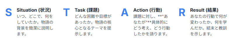 最高の原石を見つけたら、次はその輝きを最大限に引き出すための「構成」を考えます。ここで使うのが、【派遣バイト経験を就活の自己PRで最大限アピールする方法】でも紹介した、魔法のフレームワーク「STARメソッド」です。